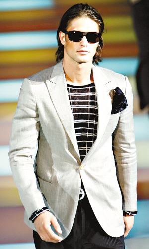 像Acosta这样的现代年轻新贵,本身的外在条件相当好,不太适合再用华丽的装束来装饰自己,而最适合以低调奢华的扮相出现。恰好今年有不少男装设计师在设计中加入了许多能够令服装变得华丽的细节,比如Armani、Versace的男装上出现了亮度的钉珠和精致的图案,看起来并不夸张,却轻易让男装倍添华丽感。