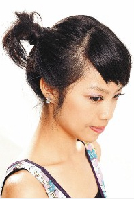 中长发绑马尾很尴尬,一绑不好,就会紧贴后脑杓,感觉老气。藉由旋转发夹扭转固定,不但结构固定,也可俏丽有动感。