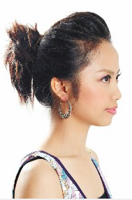 利用蜈蚣发圈绑马尾,最好头发本身要有卷度,可利用浪板夹,稍微烫一下发根,让发丝具有蓬度,这样马尾的份量足够,很有感觉!