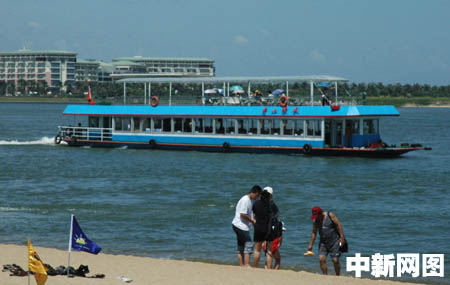 大型动力游轮开进博鳌水城,威胁水城岸堤生态安全。中新社记者 王辛莉 摄