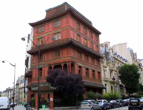 在巴黎富人区蒙梭公园附近,一座赭红色的中式楼房特别吸引路人的目光。