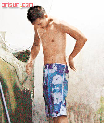 关智斌露天"澡堂"冲身 晒肌不怕"春光乍泄"(图)(2)