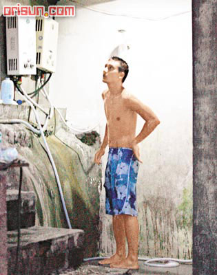 关智斌露天"澡堂"冲身 晒肌不怕"春光乍泄"(图)(3)