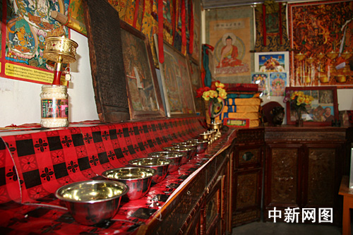 虽然移民到了大城市,但藏族百姓的生活方式与宗教信仰仍然没有改变,也一如既往地受到中国政府的保护和尊重。图为藏民新村中藏族百姓家里的佛堂。