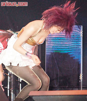 容祖儿低胸短裙跳辣身舞 弯身时波涛汹涌(多图)(2)
