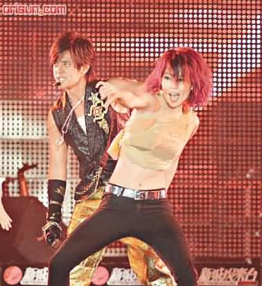 图:香港歌星古巨基与容祖儿摆弄不少造型