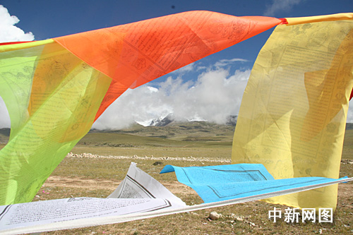 经幡之后的念青唐古拉山,他被称作财宝守护神。
