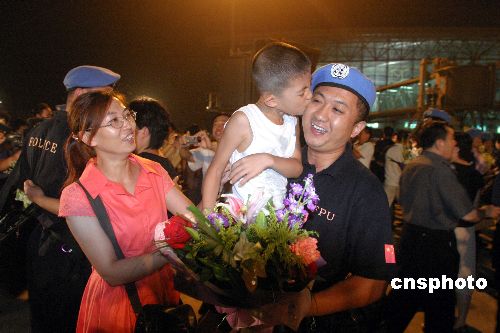 图:中国第三支驻海地维和警察防暴队先遣队启程回国
