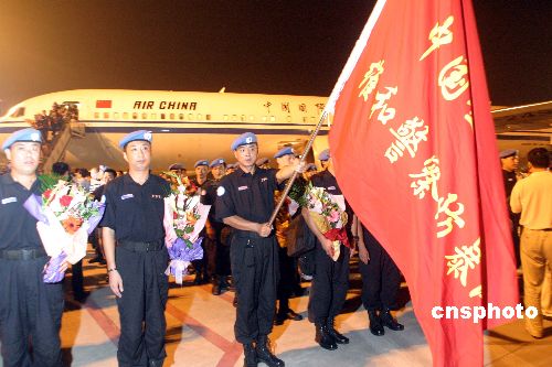 图:中国第三支驻海地维和警察防暴队先遣队启程回国