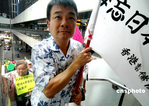 香港8月15日重光纪念日,香港所偿协会、神州青年服务社等民间社会团体,举行游行活动,纪念抗日战争胜利61周年,强烈抗议日本首相小泉一郎参拜靖国神社。中新社发 宋吉河 摄