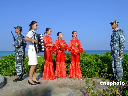 2006年8月上旬,南海舰队某部四名女兵组成的演出小分队,踏浪上千海里,奔赴西沙诸岛,为守岛官兵送出了她们自排自编的《西沙女兵》、《水兵出征》、《小岛恋歌》等十余个具有水兵特色的歌舞节目,受到了官兵们的热忱欢迎。
