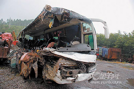 据26岁乘客王志动说,客车昨天下午5时从东莞出发,驶至事故路段时他已睡着,伴随着猛烈的撞击声,坐在倒数第三排的他被甩昏至客车前排。10多分钟后,他才苏醒,此时,满车都是血腥味,到处都是救命声,他的左腿被刮下一块肉,右腿已骨折,无法站立,用了差不多10分钟,才挣扎着从车窗中爬出。