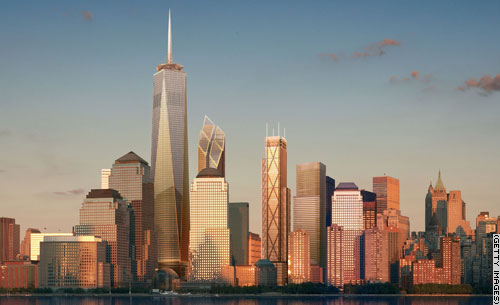 2006年9月7日:英国建筑师诺曼-福斯持和理查德-罗杰斯,以及日本建筑师槙文彦给出了另三个世贸中心建筑群建筑的设计方案,这三座建筑环绕着遇难者纪念馆,与“自由之塔”一起构成新世贸中心建筑群。纽约市官员表示,2012年时整个建筑群可以完工。