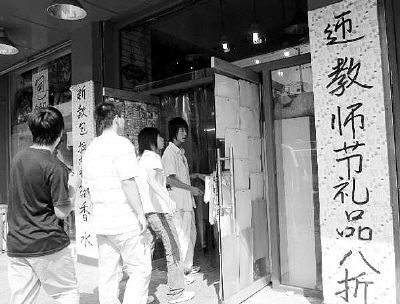 “教师节购礼品打八折!”“送教师礼品,折上折!”……近段时间,商场中这样的打折标语随处可见。