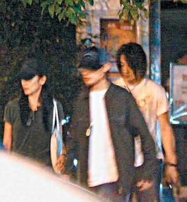 长发的Andy(右)与林熙蕾在K房闭门尽兴后,离开时二人不约而同头耷耷。