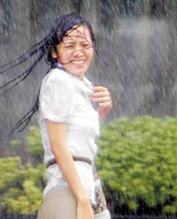 当天剧情安排,她饰演的美食鉴赏家因工作不顺,先气得揉掉报告出气,步出办公室又忘了带伞,只好在雨中狂奔拦车,无奈拦了三辆出租车都被别人捷足先登,最后只好跑进附近店家躲雨,而大雨将她淋到湿答答,连秀发都粘在脸上,再比照先前她拍“海伦仙度丝洗发精”广告时的秀发飘扬,更可以感受到这一回她真的豁出去了,企图扭转花瓶形象。