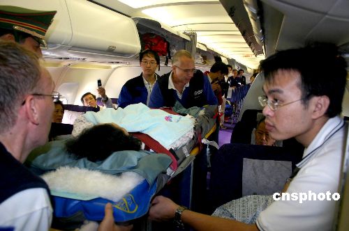 图:在吉林受伤台胞及家属乘坐直航医疗包机返台