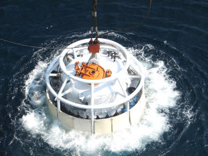 3名救生钟操纵员依次进入救生钟,开始检查气密性、关闭上圆门、脱离啮合器……一系列精心的准备工作结束后,救生钟在巨型船吊和甲板绞车的牵引下,缓缓潜入海中,与失事潜艇进行对接。