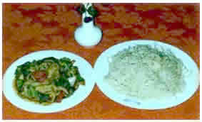 拌面,俗称拉条子,一种不用擀、压的方法而直接用手拉制成的小麦面制品+佐餐的拌面菜(味道好极了)。