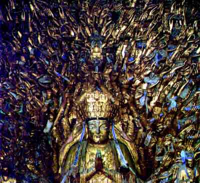 中新网9月22日电 据重庆时报报道,“千手观音病害严重,目前所发现到的病害有风化、表面金箔脱落,病害种类很全,其他佛像出现的问题都被千手观音集于一身。”21日,重庆大足石刻艺术博物馆负责人透露,最迟将在10月份对千手观音进行局部现场试验性“整容”,然后再依据试验结果确定修复时间。据悉,这标志着对大足石刻千手观音的首次现代修复保护工作已经启动。