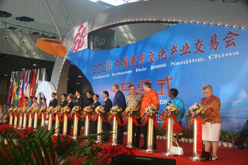 中新网南京9月23日电 记者在今天上午开幕的南京文化产业交易会上了解到,大会的巨字展标是由南京外国语学校高一女生成懋冉书写,每个字一米见方大,用简化字书写,以浑厚的魏楷榜书展现“金陵书风”,充分彰显了古都南京的文化底蕴。一个15岁的少女担纲如此重任,成为本届南京名城会一大佳话。