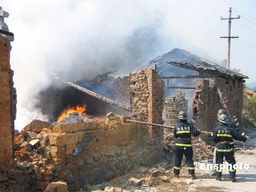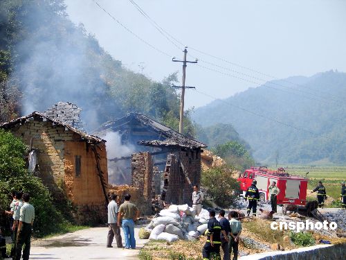 9月26日,江西省宜春市湖田乡平田村一化工厂突发大火并爆炸,致使房倒屋塌,大量镁粉被焚毁一空,消防官兵奋战三小时成功将大火扑灭,幸无人员伤亡。据了解,火灾是因一名工人操作不当引起,只因不懂得消防常识,致使星星之火燎遍全厂。由于该厂房涉嫌违章建筑,无证经营,且工人未经培训擅自上岗,该厂业主正被消防部门立案调查处理。中新社发 陈乃国 摄