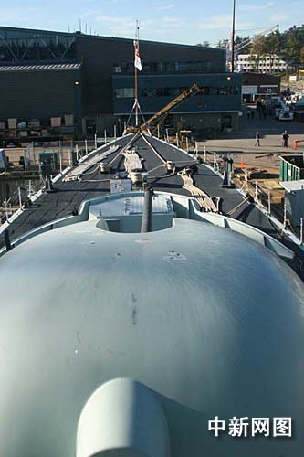 停泊在加海军太平洋舰队司令部所在地埃斯奎莫尔特港的“阿冈昆”号护卫舰。中新社记者吕振亚摄