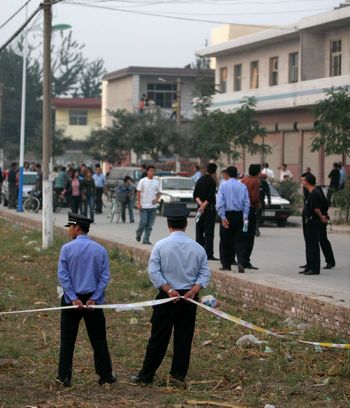 昨天18时10分,记者赶到事发地点———辛集古城花园小区附近的皮革加工厂时,附近的东华路早已被警方封锁,通往现场的所有路口、小巷都拉起了警戒线。