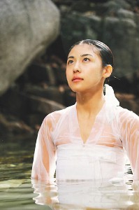 中新网10月3日电 为了新戏《黄真伊》,韩国美女河智苑不仅露出曼妙的胴体,还得忍受在冰冷的瀑布中浸泡六个小时,她说:“因为水温太低,所以全身都快要麻痹了,很辛苦。”