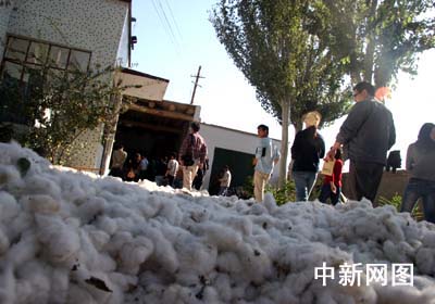 走入加工户陈珊的家中,晾晒枸杞的木屉已堆到了房顶,家里剩余的地面上还晒着当地农民另一项支柱产业——棉花,进入大门的第一个念头,这绝对是个温暖的农家。