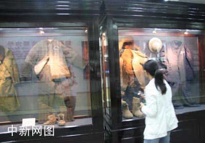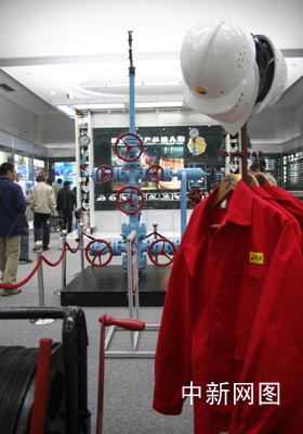 克拉玛依展览馆中陈列现在石油工人所穿工作服。秦欣 摄