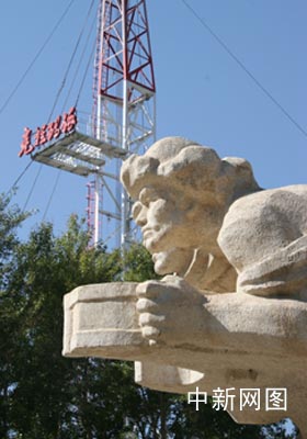 克拉玛依展览馆院内有着西北最大的浮雕——创业英雄墙和石油工人雕像等。图为石油工人雕像。秦欣 摄