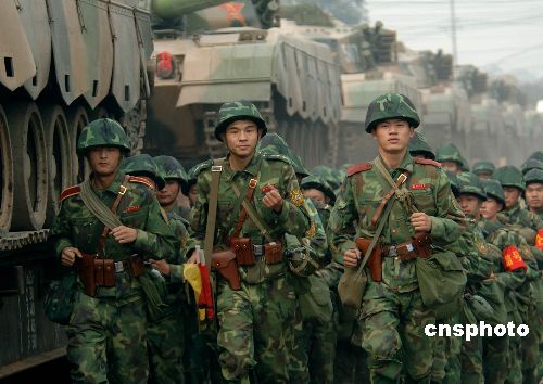 10月12日,解放军某摩托化步兵师的新型坦克正在进行铁路输送。当日,“确山-2006”实兵检验性演习,在济南军区某摩托化步兵师拉开序幕。这是中国人民解放军历史上首次由总部机关对步兵师进行整建制实兵实弹检验性演习考核。在12日到18日的演习过程中,济南军区某摩托化步兵师将从驻地远程机动到某合同战术训练基地,并将在复杂电磁环境下与模拟“蓝军”展开对抗。中新社发 吴苏琳 摄