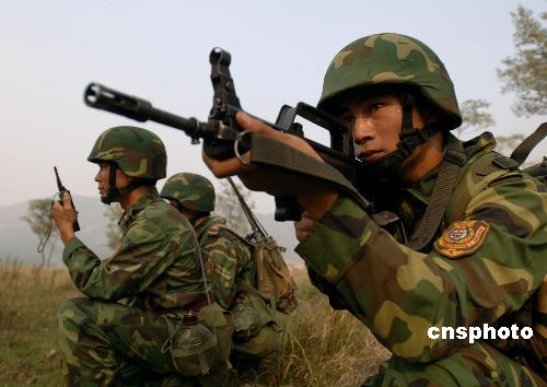 参加“确山-2006”实兵实弹检验性演练考核的济南军区某步兵师万余名官兵、千余台装备车辆,经数百公里铁路输送和公路开进,14日全部安全到达上级指定的“作战”地区----济南军区确山合同战术训练基地。确山-2006”演练自本月12日开始以来,参加演练并接受四总部机关联合考核的济南军区某步兵师,已完成了战备等级转、出动准备、远程快速机动等课题的演练。中新社发 吴苏琳 摄
