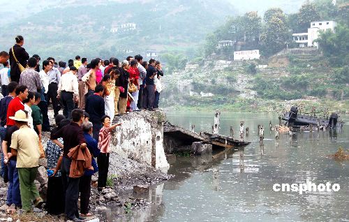 图:三峡蓄水工程最后一座碍航桥成功爆破(2)
