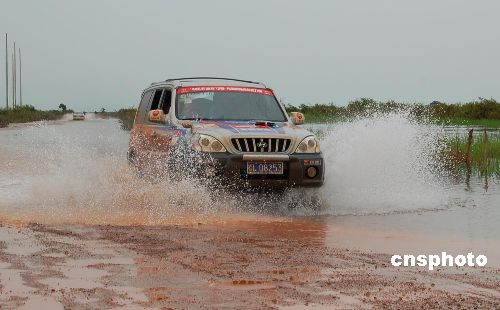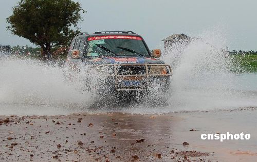中国—东盟汽车拉力赛在柬埔寨水淹道路比赛(2)