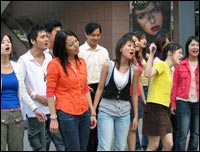 还有呢,国际精品CHANEL晶亮的招牌与橱窗前,是一组穿着类似凤仙装,操着胡琴的女子在表演民俗小调,颇有时空交错的魔幻美感。这天,是台北的“街头艺人嘉年华会”,平时散落各处的街头艺人来此大会串。台北的街头,顿时更加增色!