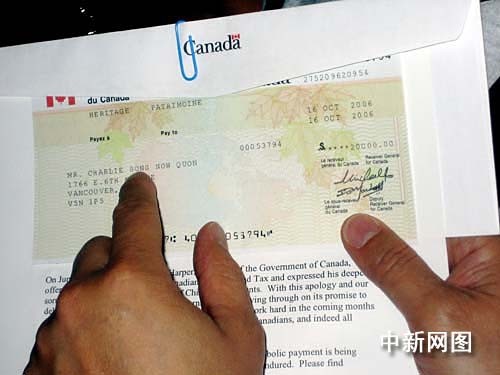 中新网温哥华10月20日电(尹琳)“我从没想过这一天真的会到来,直到拿到支票那一刻才相信这是真实的。”百岁华裔老人关祥国手中握着刚刚拿到的“人头税”赔偿支票,情绪十分激动。