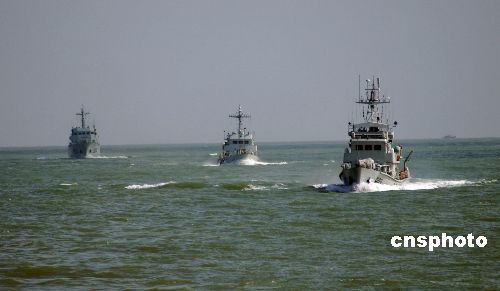 图:东海舰队某猎潜艇大队开展临检拿捕演练