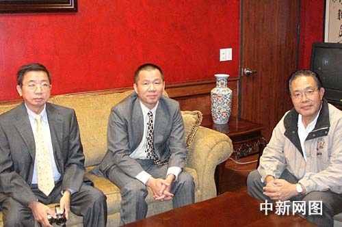 夏春平副总编(中)与美南报业传播集团首席执行官李蔚华(右)、资深副总裁朱幼桢进行交流。