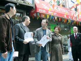 寇顿华人助理黄函华建议商家安装摄像机,既可以防盗,碰到无故被开罚单,还可以录下证据。(记者林菁)