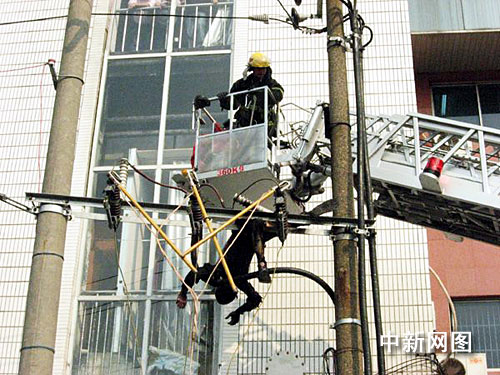 截止二十四日下午二时三十分,消防队员把死者取了下来,但其身份难以确认。目前,警方正在对案情做进一步的调查。