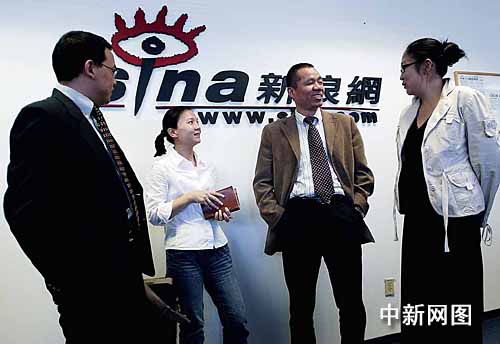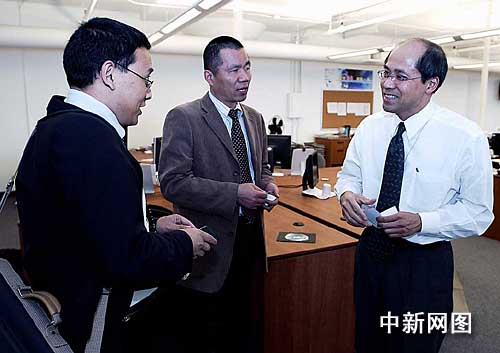 中国新闻社副总编辑夏春平(中)、美国分社社长刘小青(左)拜访旧金山北美新浪网总经理陈岸(右)。 作 者:陈钢