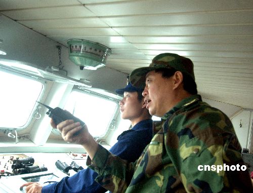 部队首长在导弹护卫艇上指挥救援。