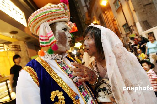 组图:香港市民提早欢度万圣节(5)
