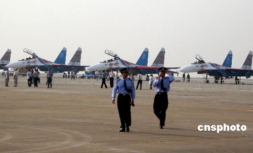 俄罗斯苏-27战机亮相。中新社发 孙自法 摄