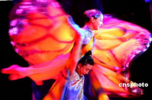 中国残疾人艺术家精彩的舞蹈表演《梁祝·化蝶》引来掌声不断。