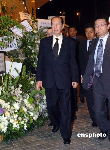 曾经与霍英东共事过的澳博行政总裁何鸿燊赶到殡仪馆向霍英东的灵位致祭。