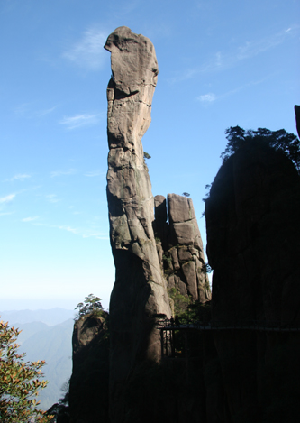 中新网11月7日电 “司春女神”、“巨蟒出山”、“观音赏曲”,还有“老道拜月”——参加第三届中国网络媒体“江西行”的编辑记者今天在江西上饶东北部的三清山见识了一部“石头记”。