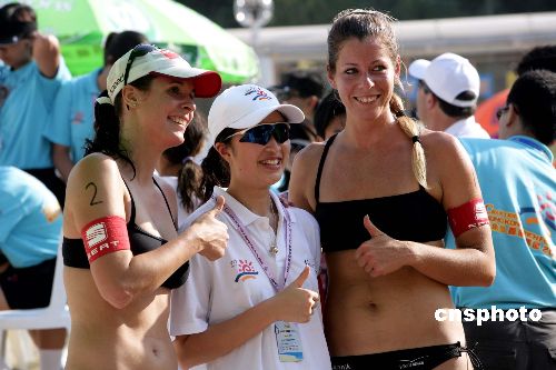 香港沙滩节2006国际女子沙滩排球赛11月9日在九龙公园开赛,来自世界各地的多支沙滩排球队伍展开首天赛事,争取晋级。中新社发 洪少葵 摄